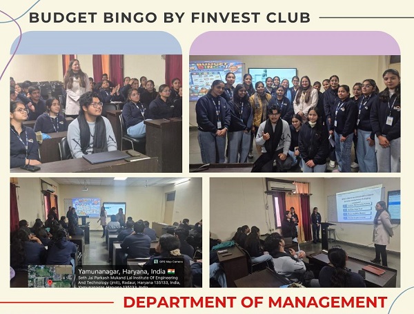 Department organised "Budget Bingo" activity by Finvest Club held on February 3, 2026 organized by the Department of Management.