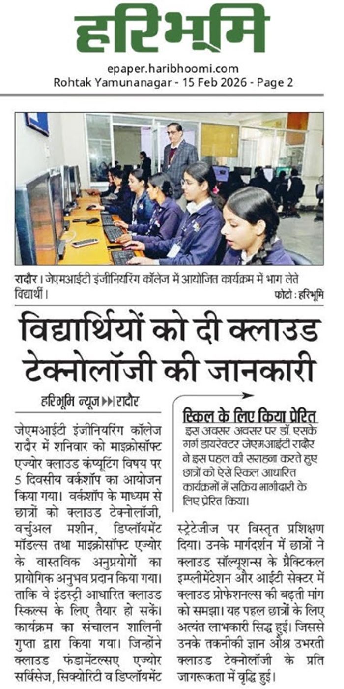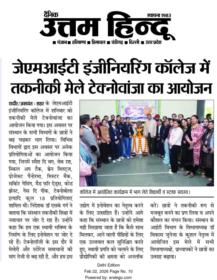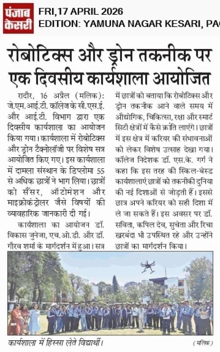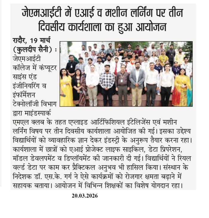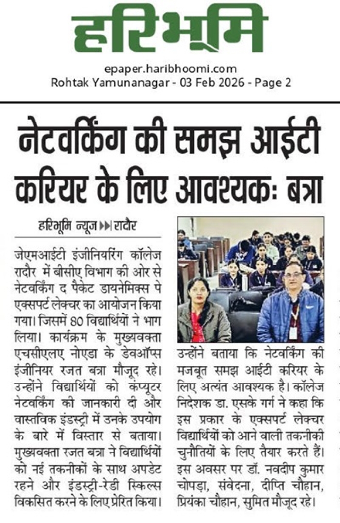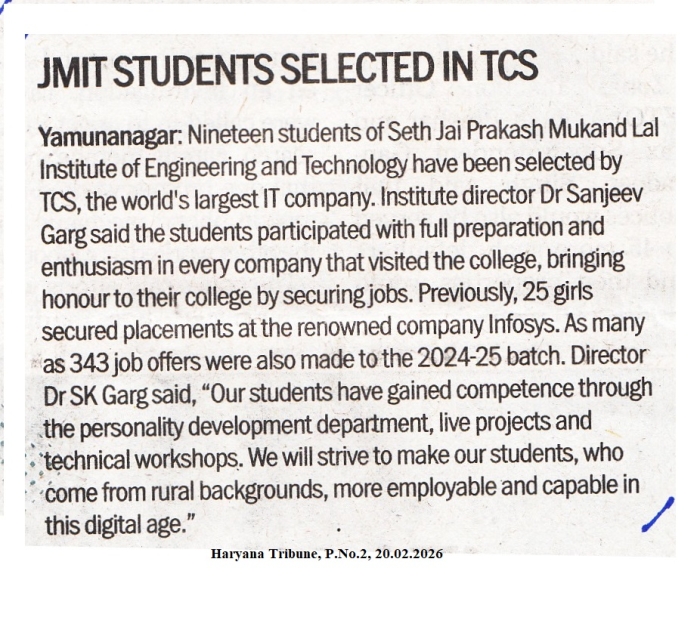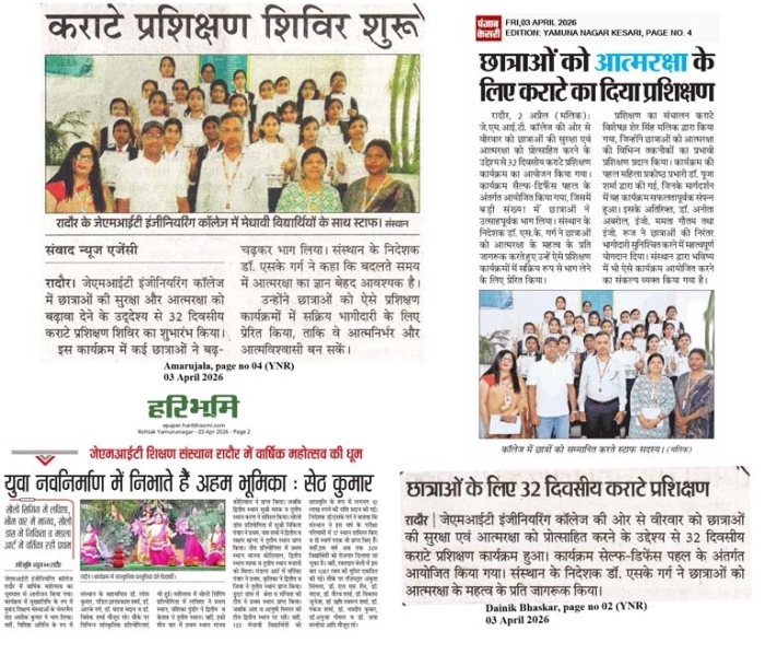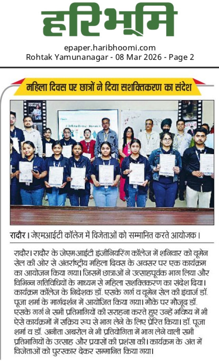 • JMIT | Approved by All India Council for Technical Education (AICTE) & Department of Technical Education (DTE), Haryana. Affiliated to Kurukshetra University (A++ Grade NAAC Accredited), Kurukshetra - Haryana