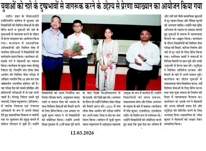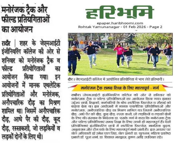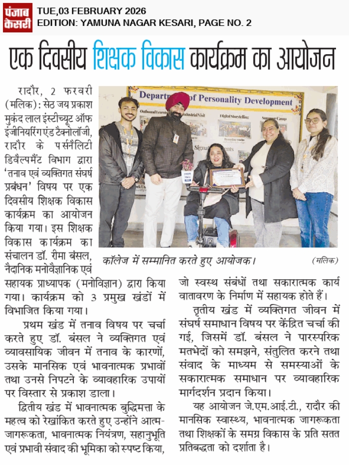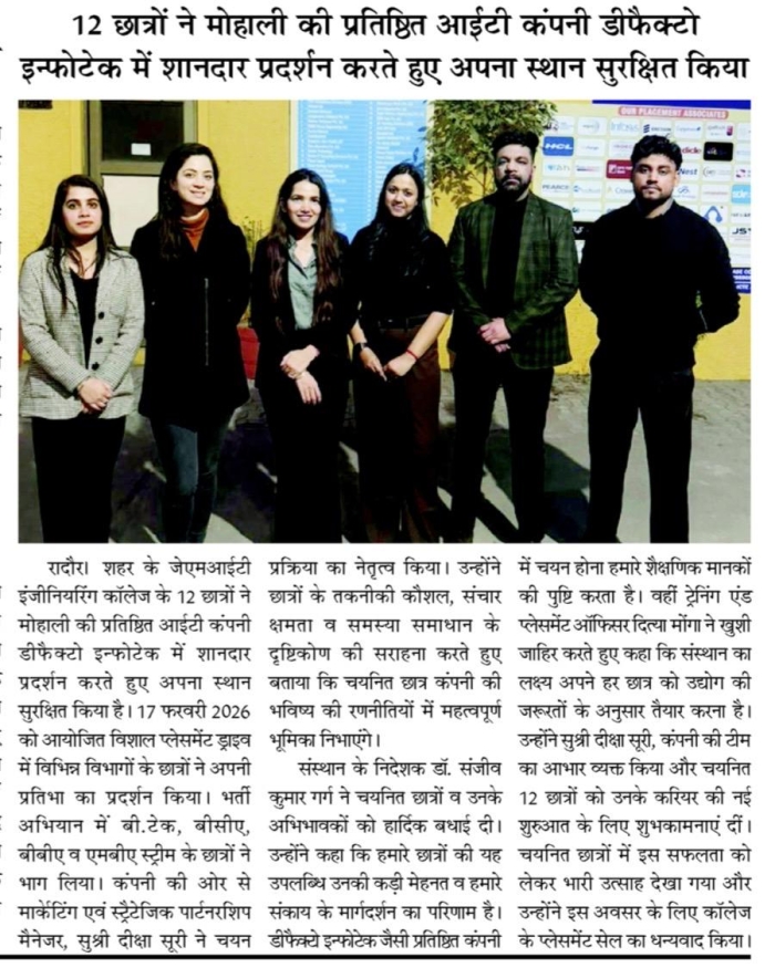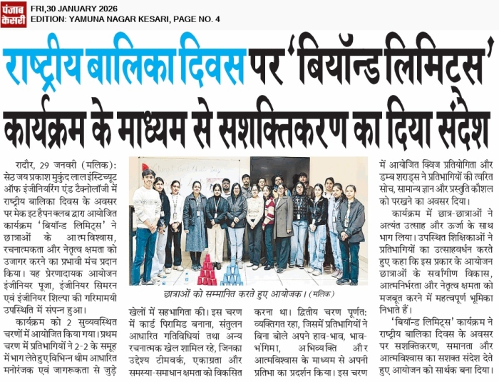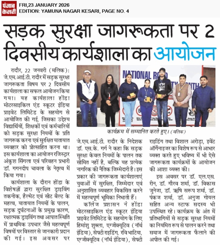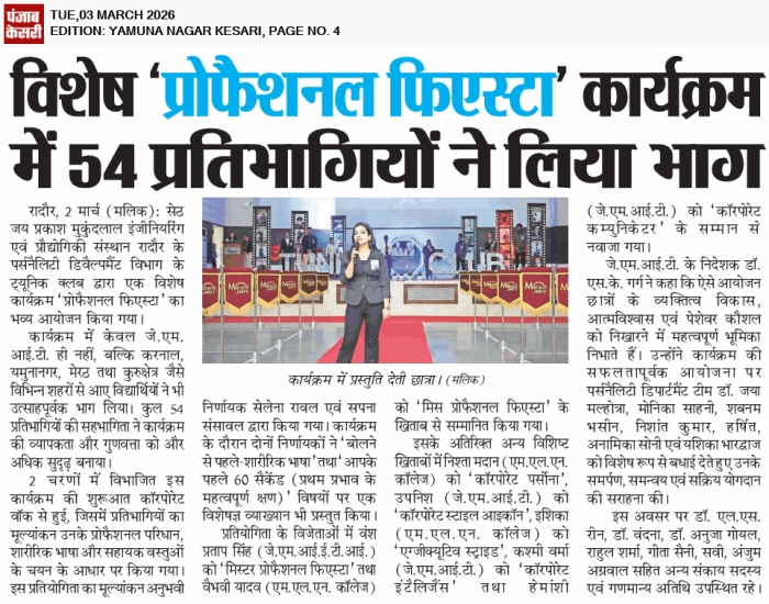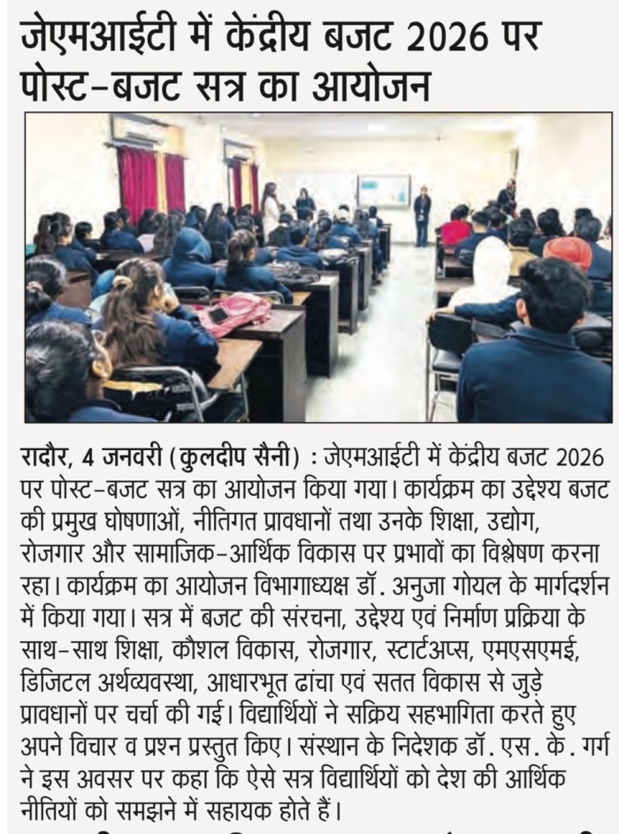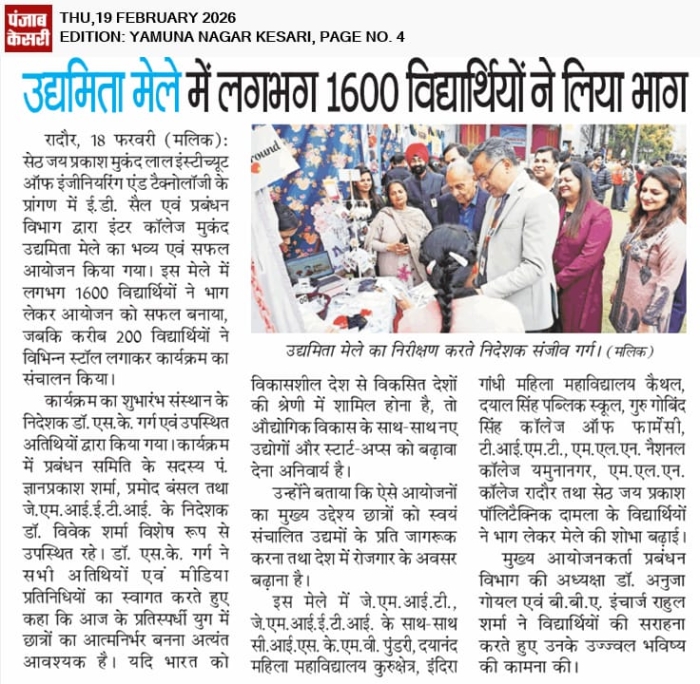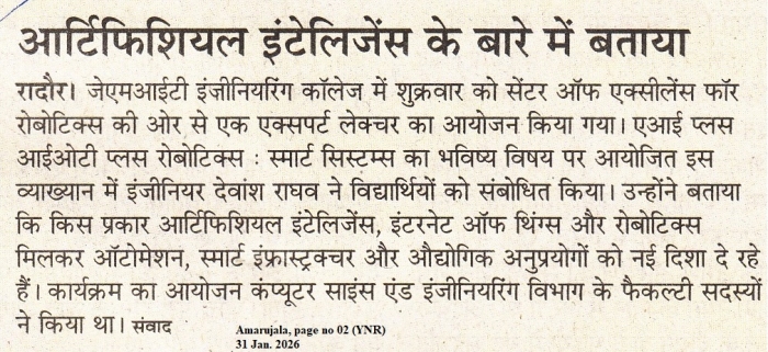 • JMIT | Approved by All India Council for Technical Education (AICTE) & Department of Technical Education (DTE), Haryana. Affiliated to Kurukshetra University (A++ Grade NAAC Accredited), Kurukshetra - Haryana