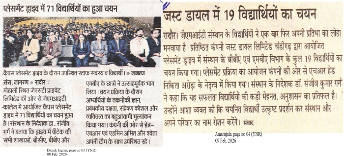 Placements of our Students in JST and Just Dial