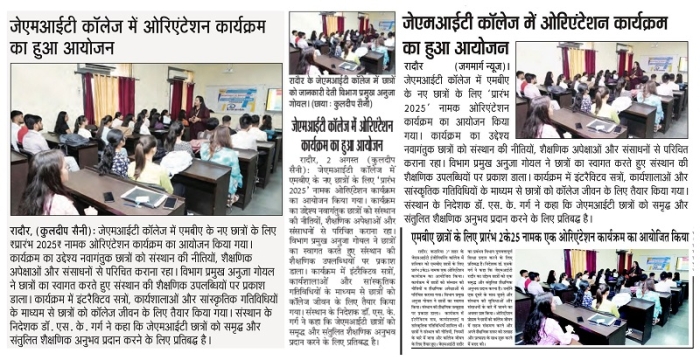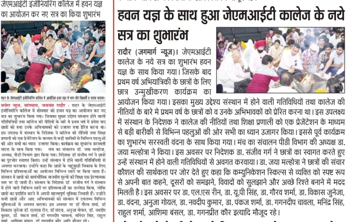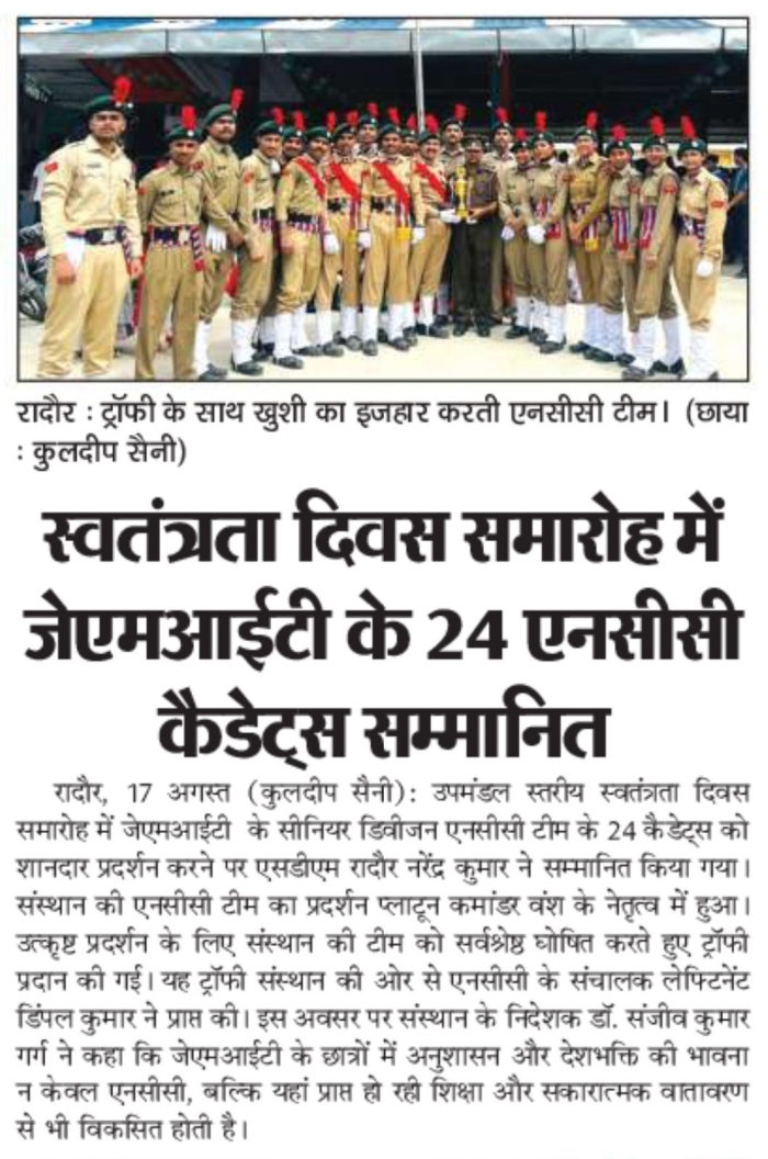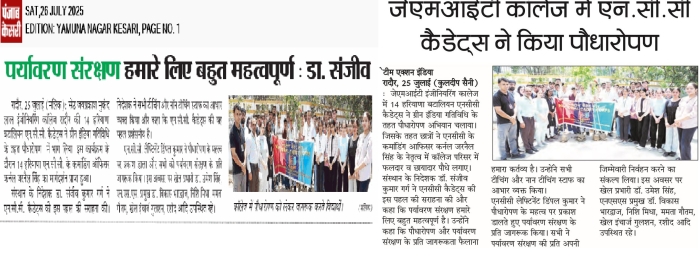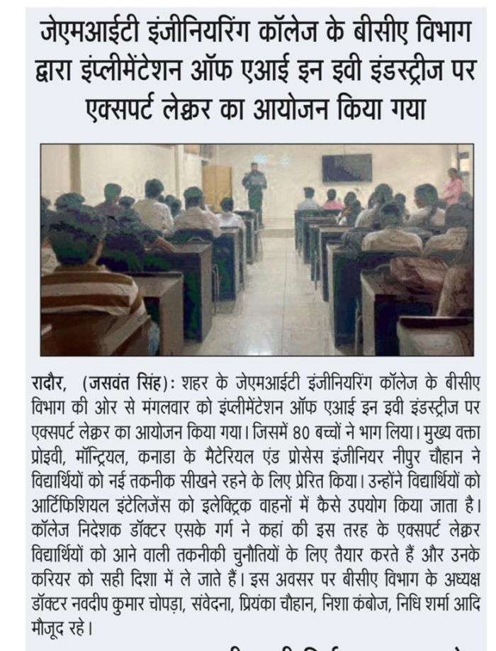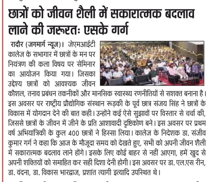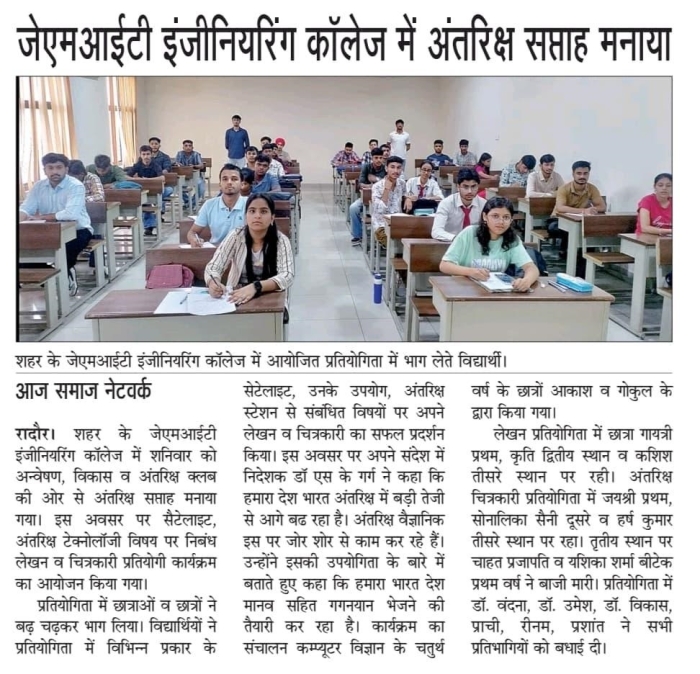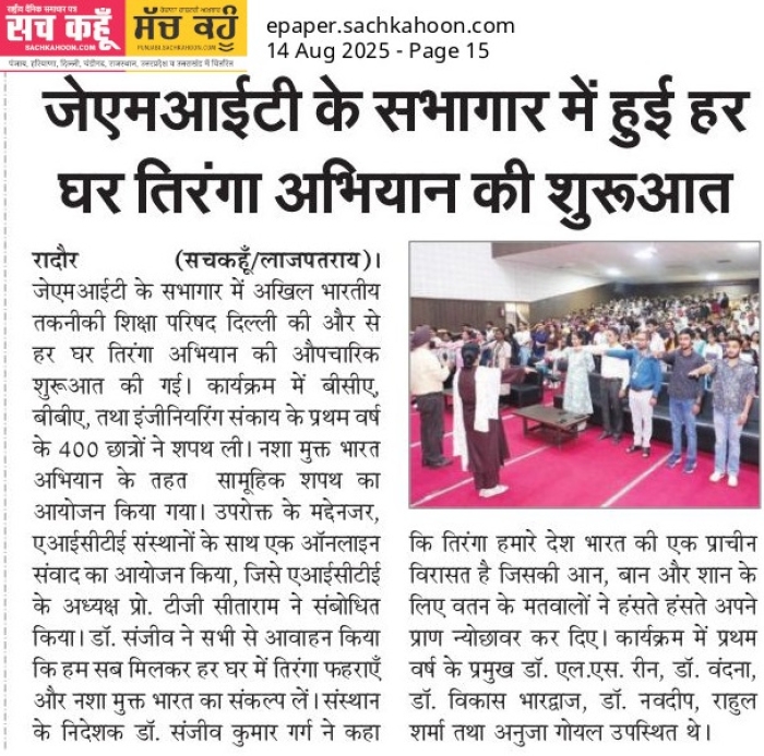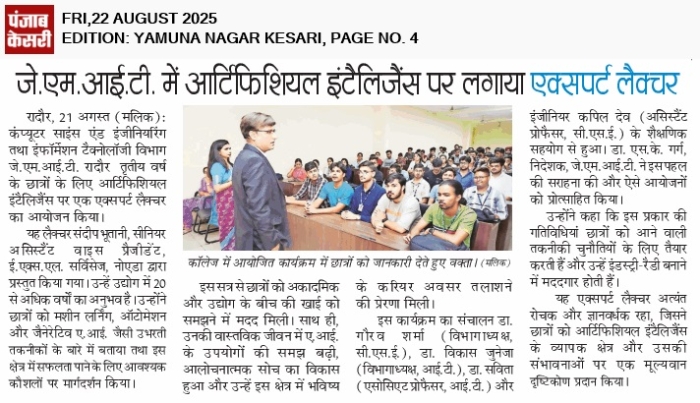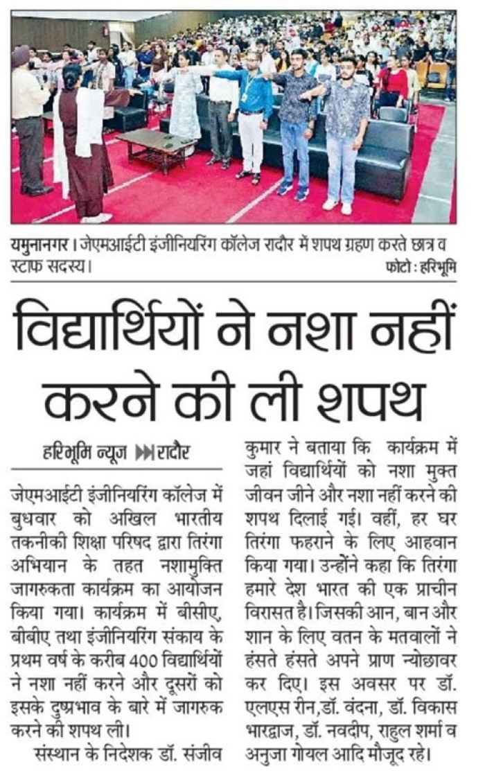 • JMIT | Approved by All India Council for Technical Education (AICTE) & Department of Technical Education (DTE), Haryana. Affiliated to Kurukshetra University (A++ Grade NAAC Accredited), Kurukshetra - Haryana